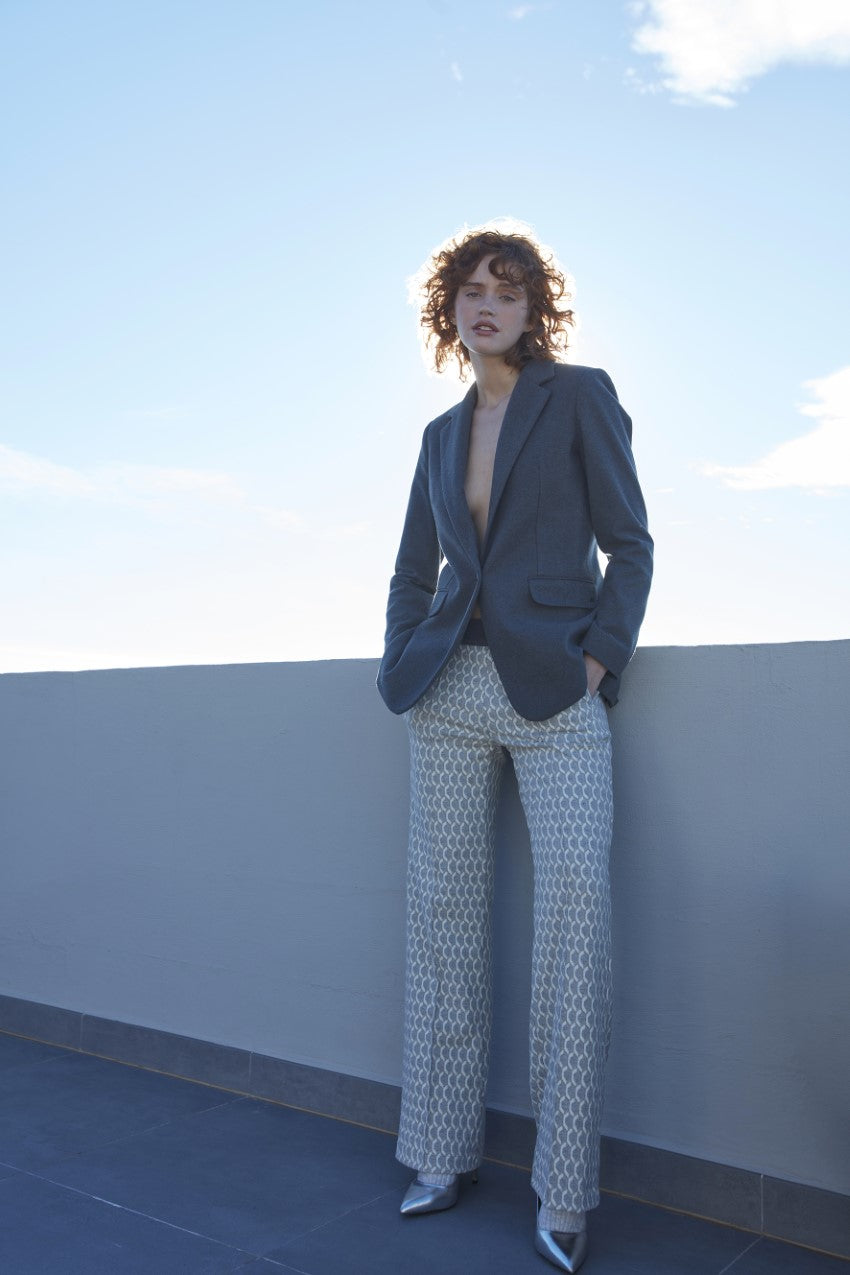 Easy Straight Дамски панталон с прав силует от фин памучен жакард с лурекс