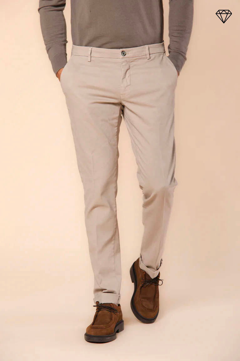 Milano мъжки панталони чино от габардин с еластичност, с изключително стягащ силует.
