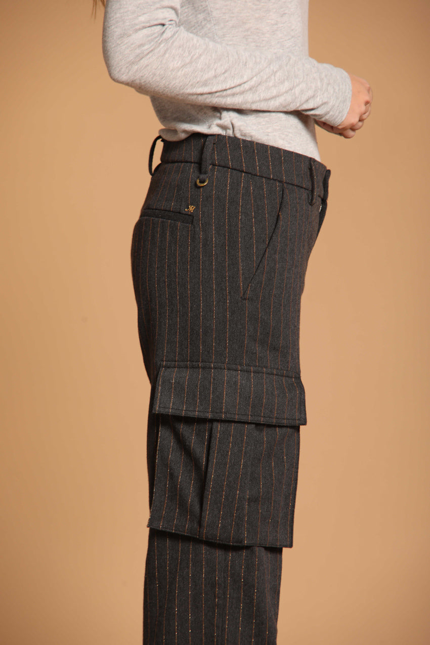 Victoria Панталон за жени с карго джобове с раиран десен и лурекс, прав модел.