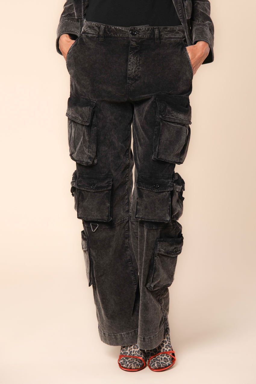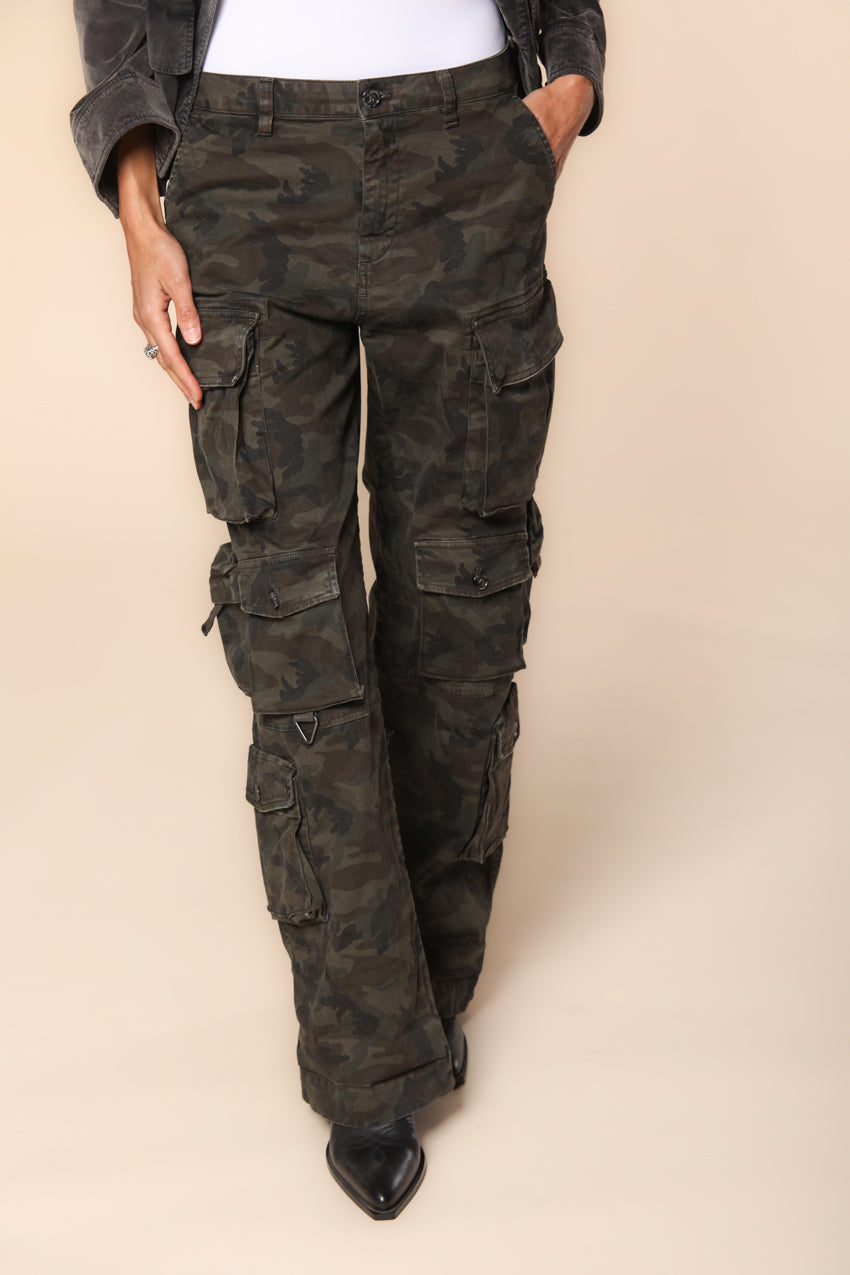 New Hunter Дамски карго панталони от памучен сатен и камуфлажен принт, прав