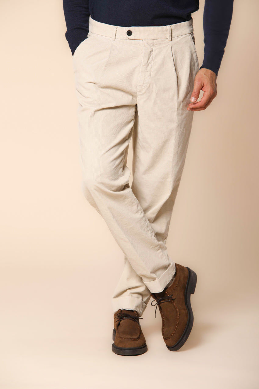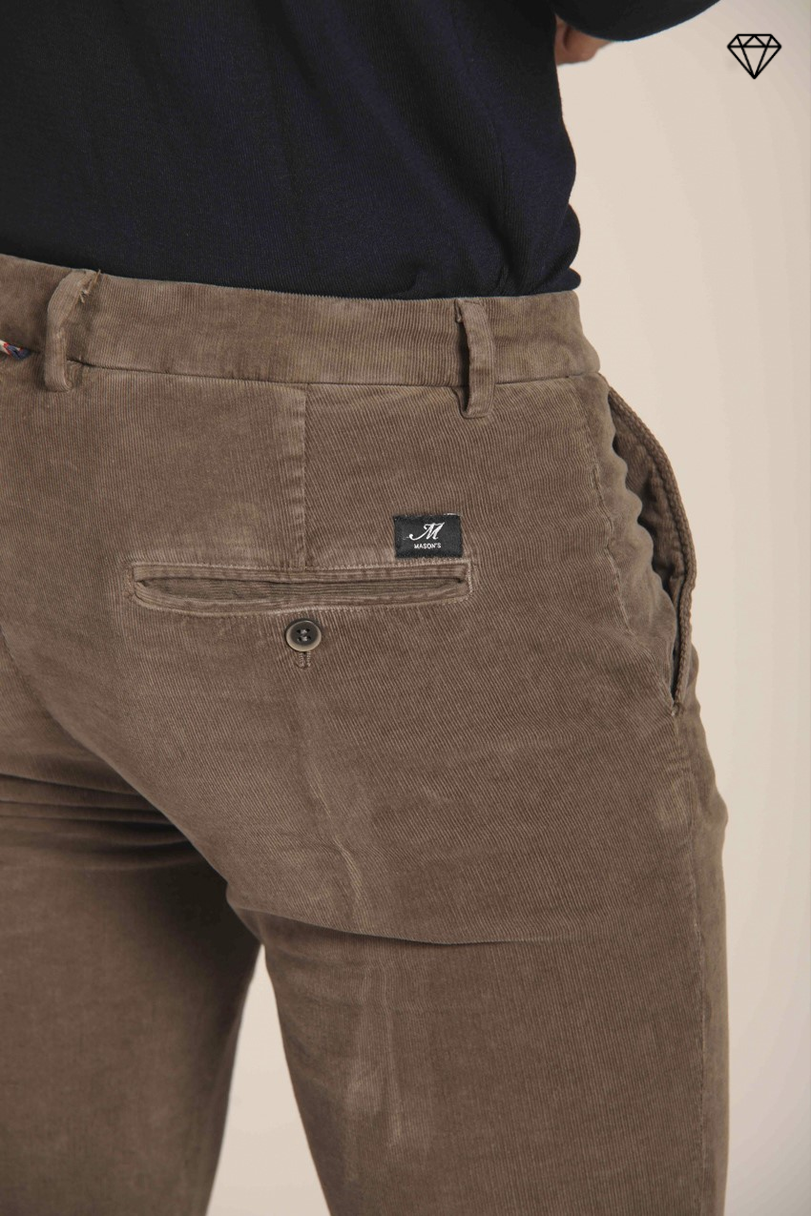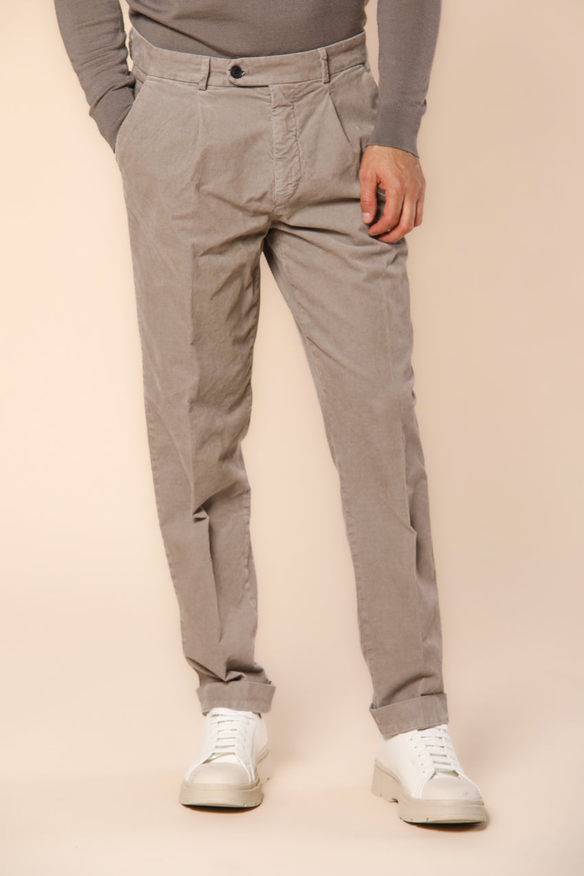 Osaka Мъжки панталон за мъже от рипсено кадифе, кариран десен, кройка "морков"